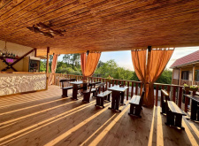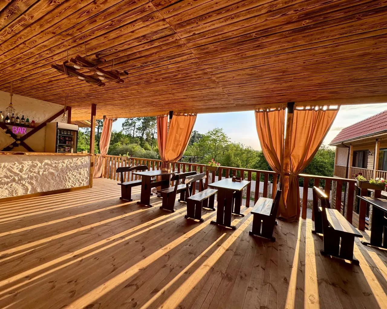 На территории работает кафе-бар, в котором подают блюда домашней кухни. Оборудованы беседки и зона отдыха. |