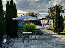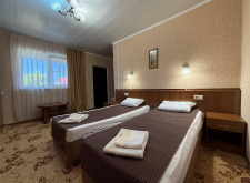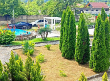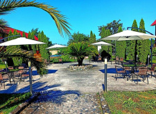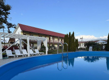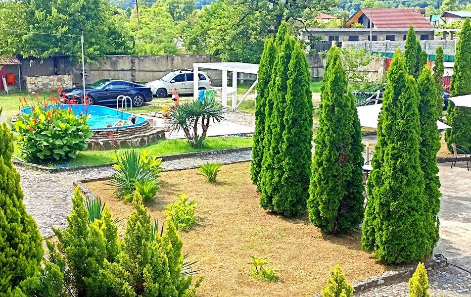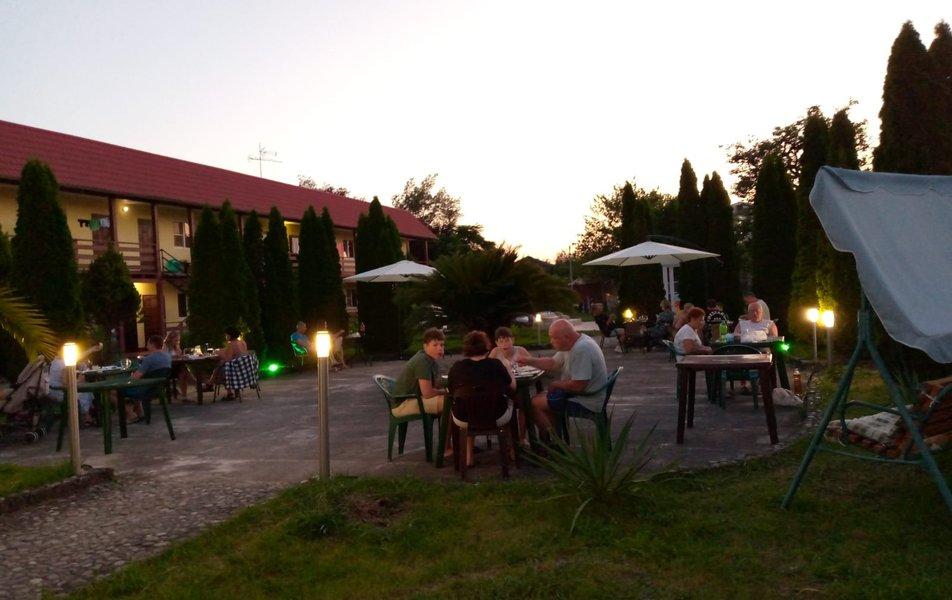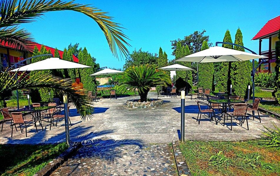 «Абхазский дворик» - это сезонный отель: отдых в летние месяцы здесь самый полноценный. С июня по сентябрь в столовой гостиницы подают завтраки, обедают и ужинают туристы за дополнительную плату. Бассейн и море тоже наиболее приятны в эти месяцы. Городской галечный пляж находится в 270 метрах от отеля. Важно! На границе не принимаются заламинированные свидетельства о рождении!